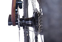 Die Idee von Classified Cycling ist so simpel wie überzeugend: Statt auf einen Umwerfer und zwei Kettenblätter an der Kurbel setzt das belgische Start-Up auf ein leichtes Zweigang-Planetargetriebe mit einer Untersetzungsstufe in einer eigens dafür ausgelegten Hinterradnaben. Dabei simuliert die Untersetzung mit einem Faktor von 0.7 die konventionellen Abstufungen an Rennvelo-Kurbeln. Das Schaltsignal wird per Funk und über einen Empfänger in der Steckachse zur Nabe gesendet, und der Schaltvorgang erfolgt innerhalb von 15 Tausendsteln einer Sekunde. Damit eliminiert Classified Cycling das Risiko, dass die Kette entgleist und sich zwischen Rahmen und kleinem Kettenblatt verklemmt. Zudem tritt bei der Kombination von grossem Kettenblatt und Getriebe weniger Reibung im System auf, und auch der Verschleiss fällt geringer aus.