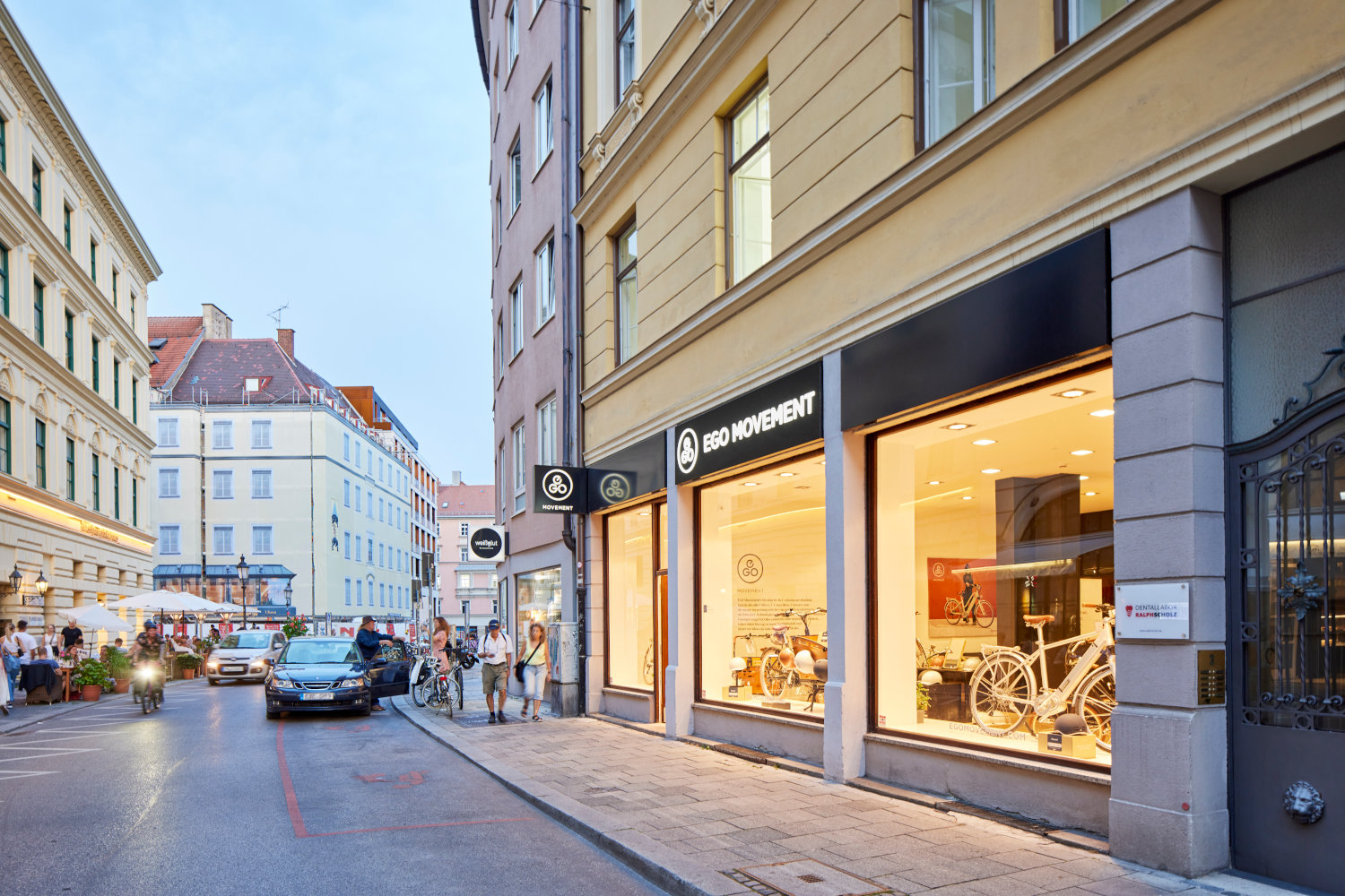 An der Hackenstrasse 3 in der Innenstadt Münchens, zwischen Marienplatz und Sendlinger Tor gelegen, hat Ego Movement das Ladenlokal des Tauch- und Wassersport-Anbieters Fluid übernommen und für die eigenen Zwecke umgebaut. Dieser dritte Touchpoint in Deutschland nach Stuttgart und Hamburg bietet viel Tageslicht, Sitzplätze zum Verweilen für die Kundschaft sowie viel Platz, um das breite Sortiment an E-Bikes und Zubehör gebührend zur Geltung kommen zu lassen. Um sich beim Münchner Publikum einen Namen zu machen, bietet Ego Movement zudem kostenlose Probefahrten an.