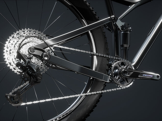 Entsprechend bietet die Zwölfgang-Kassette mit ihren haltbaren Edelstahl-Ritzeln eine enorme Bandbreite von 510 Prozent, passt aber wegen dem Zehner-Ritzel nur auf Microspline-Freilaufkörper. Die Deore-Kurbel wird in 170 oder 175 mm Länge und mit einem Kettenblatt mit 30 oder 32 Zähnen angeboten. Wer ein kleineres oder grösseres Kettenblatt benötigt, kann zu Teilen aus den XT- oder SLX-Gruppen greifen - die Direct-Mount-Aufnahme ist identisch. Dazu kommen passende Varianten für drei Breiten der Hinterradachse: 142, 148 (Boost) oder 157 mm (Super Boost).