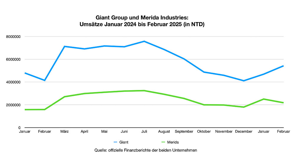 Als an der Börse gehandelte Unternehmen hatten die Giant Group und Merida Industries schon im Januar die Umsatzzahlen für das vierte Quartal und das gesamte vergangene Jahr veröffentlicht. Dabei zeigte sich, dass die beiden unterschiedlich erfolgreich gewirtschaftet hatten. Im Fall von Giant lag der Umsatz für das gesamte Jahr mit NTD 71.25 Milliarden (CHF 1.99 Milliarden) um 7.4 Prozent unter dem Wert des Vorjahres. Nur im dritten Quartal konnte die Giant Group mehr Umsatz einspielen als im Vorjahr. Dagegen konnte Merida Industries den Umsatz nach einem verhaltenen, ersten Quartal im Vergleich zum Vorjahr um 9.1 Prozent auf NTD 29.647 Milliarden (CHF 830 Millionen) steigern.