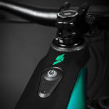 Ein Steuersatz mit Lenkeinschlag-Begrenzung und gummierte Schützer am Unterrohr schützen den Carbonrahmen vor Einschlägen durch die Gabelkrone. Zudem finden sich am Steuerkopf zwei geschlitzte Alueinsätze. Diese dienen nicht nur als Zugang für die sauber im Innern des Rahmens verlegten Kabel und Leitungen, sondern auch als Abzug für Hitze, die die Batterie erzeugt.