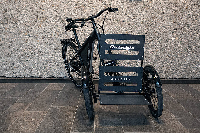 Als Lademeister unter den Velos sind Cargobikes ungemein praktisch, um Einkäufe, Kinder oder Werkzeug zu transportieren. Aber wenn sie nicht benötigt werden, brauchen Lastenvelos viel Abstellplatz. Auch die hohen Preise für neue Lastenvelos halten noch manche Interessenten ab - und sorgen beim Sharing-Anbieter carvelo2go für regen Zulauf. Eine günstige Alternative, um die Ladekapazität eines bestehenden Velos deutlich zu erweitern, bietet der 2015 gegründete Anbieter Add Bike aus Frankreich, dessen Produkte ab sofort über die Stolutions GmbH lieferbar sind.
