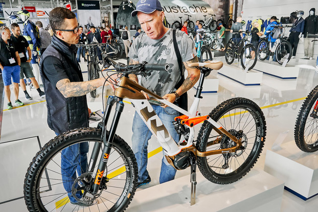 Besucher die Vorzüge eines E-Mountainbikes von Husqvarna Bicycles.