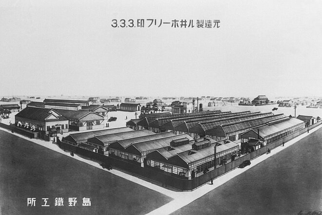Luftaufnahmen vom Shimano-Hauptsitz in Sakai aus dem Jahr 1961 (links)
