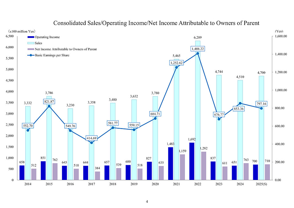 Somit liegt der Umsatz zwar klar unter dem Rekordergebnis von 2022, aber um 24 Prozent über dem Ergebnis von 2019 als dem letzten Jahr vor der Pandemie. Diese 24 Prozent entsprechen in etwa der Teuerung in diesem Zeitraum. Das Geschäft mit Velo-Komponenten spielte im Jahr 2024 einen Umsatz von JPY 345 Milliarden (CHF 2.04 Milliarden) ein, 5.2 Prozent weniger als im Vorjahr. Dabei gilt es zu beachten, dass das Minus zum Vorjahr nach den ersten nach drei Quartalen noch 12.3 Prozent betragen hatte. Mit anderen Worten: Shimano wirtschaftete ab der Jahresmitte deutlich besser. Während der Betriebsgewinn nochmals zurückging, legte der Reingewinn um 25 Prozent zu.
