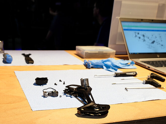 Im kleinen Finale ging es noch um den dritten Startplatz an den Europameisterschaften. Die Aufgabe war knifflig, galt es doch eine Di2-Rennveloschaltung von der Belegung der Schaltknöpfe her an ein vorgegebenes Szenario über SMPCE02 anzupassen und im Synchro-Modus abzuliefern. Dabei zog Florian Lonfat (Tschopp Cycles) gegenüber Jérémy Tachat den kürzeren - auch weil ihm laut eigener Aussage elektronische Schaltungen weniger liegen als mechanische. Im grossen Finale musste der Freilaufköprer einer Microspline-Direct Drive-Nabe auseinander gebaut und wieder zusammengesetzt werden - und das ohne Hilfe der dafür gedachten Spezialzange oder eines Schraubstocks. Dafür wurden weder eine Reinigung noch eine neue Fettpackung verlangt.