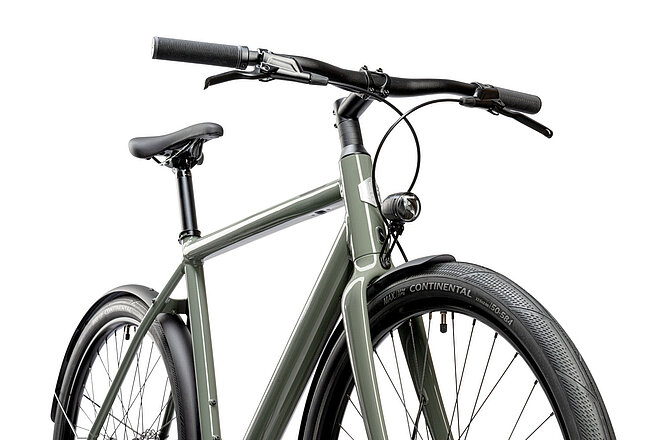 vergleichsweise filigrane Rohrquerschnitte auf - untypisch für viele E-Bikes.