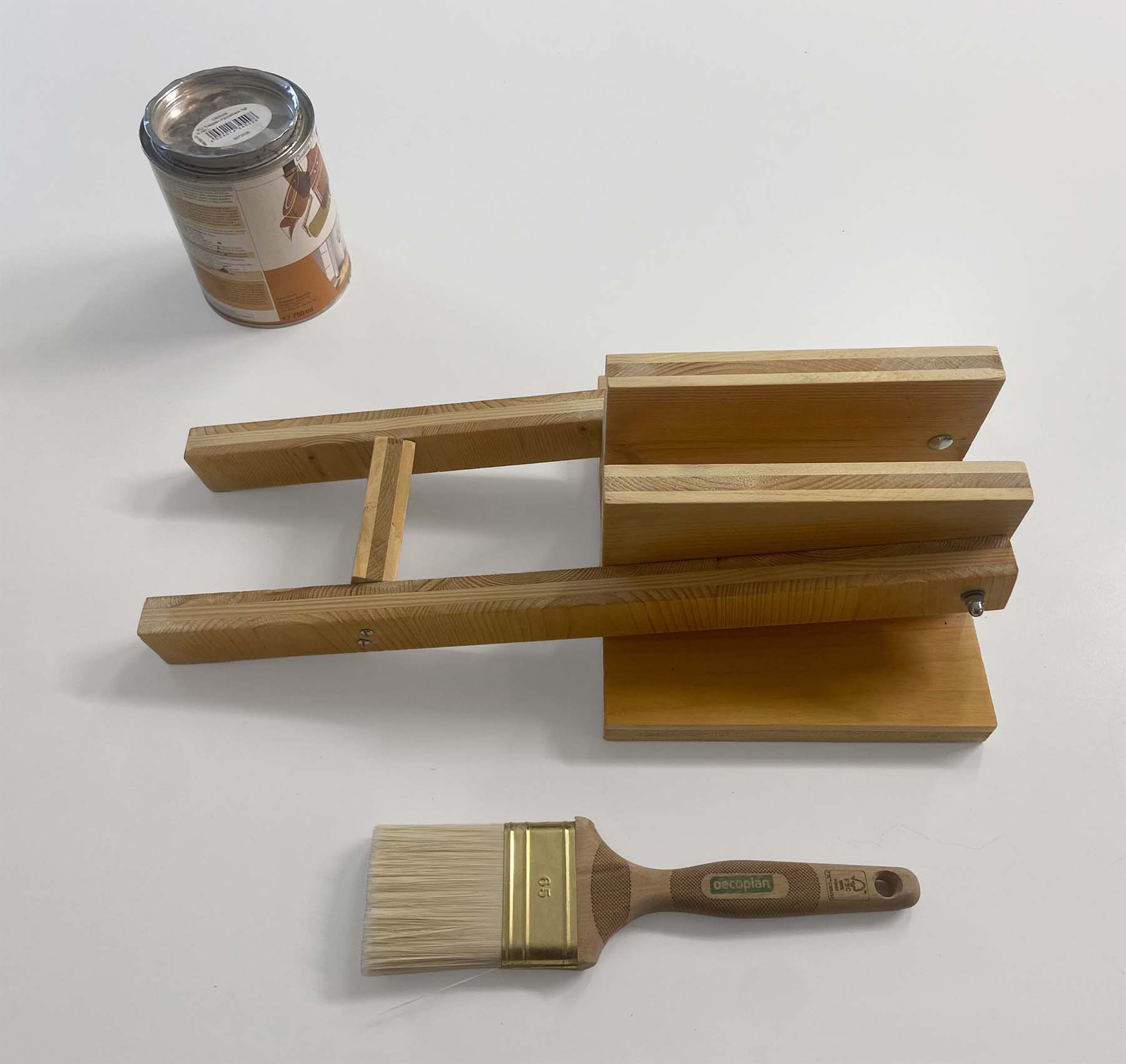 Werkzeug: Säge, Bohrer, Schleifpapier, Pinsel