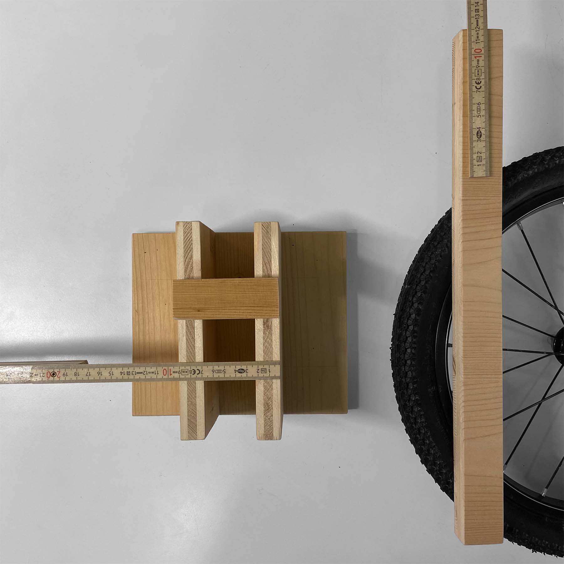 Pneubreite messen für den Abstand der Seitenbrettchen. Pneuinnenkante messen mit 10 cm Abstand zur Pneuaussenkante.