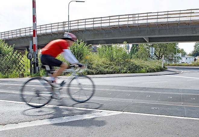 Wenn die Spurrille gefüllt ist, stellen die Schienen für Velofahrende keine Gefahr mehr dar.